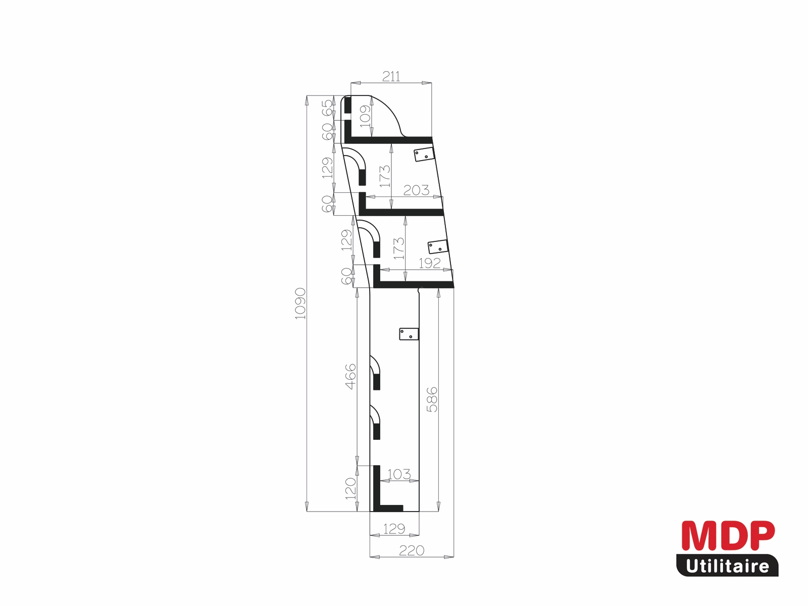 Casier sans Bacs Ar Gauche MAXI (L:103 x P:22 x H:109) pour Fiat DOBLO VAN 2023