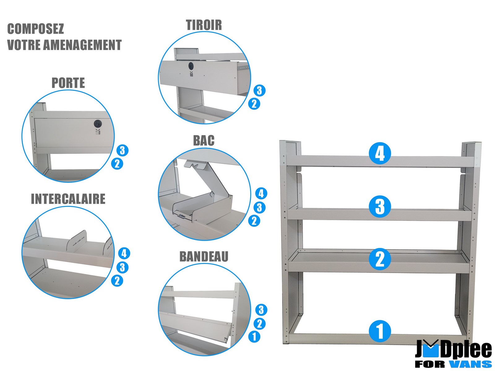 Nos casiers se montent uniquement dans un véhicule déja équipé d'un kit de protection JMDplee VANS