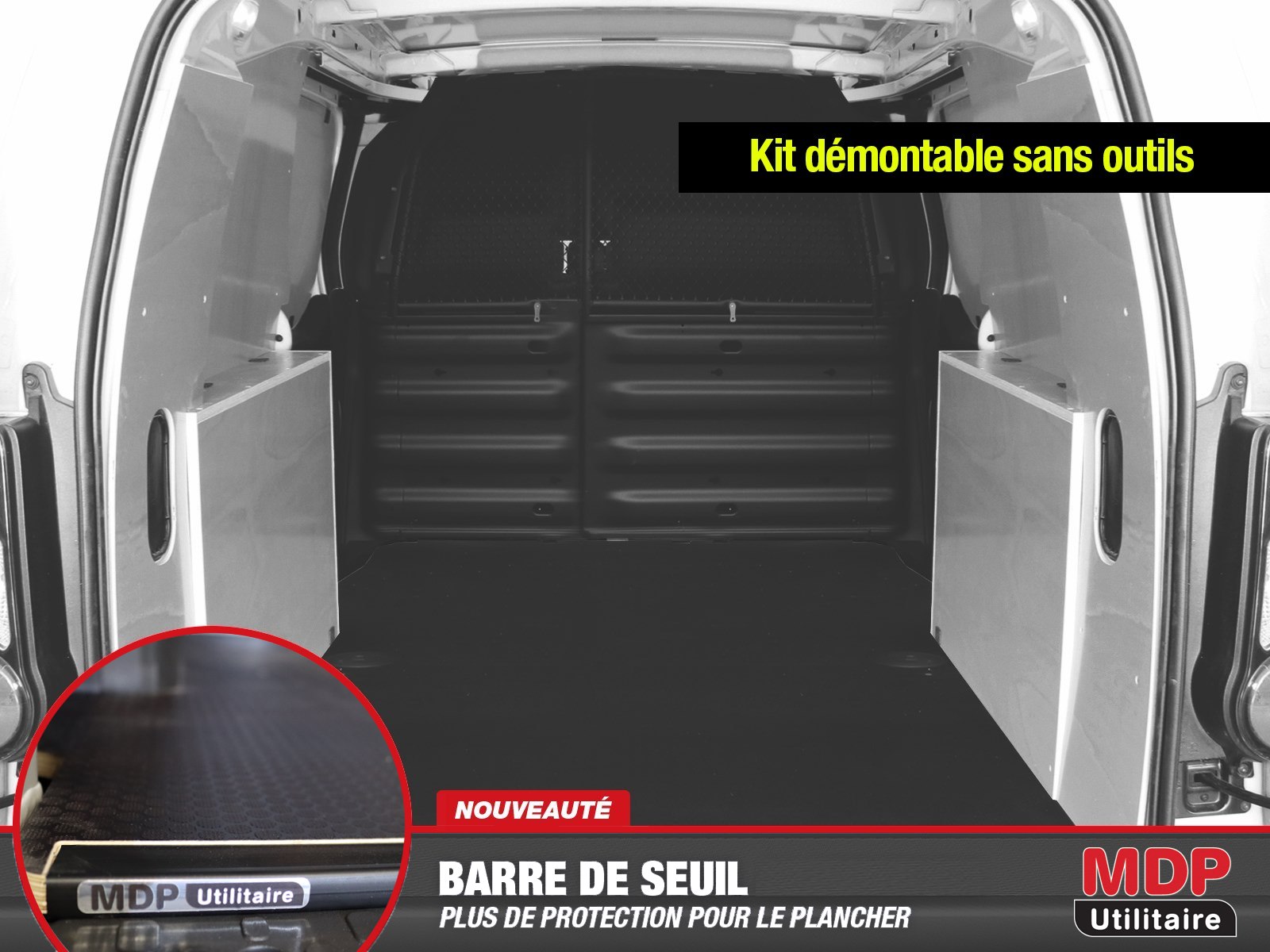Démontable sans outils Kit +Portes AR Haute +Plancher Anti Bouleau LONG 2 Plc pour Peugeot PARTNER 2018